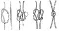 Плоский узел – один из основных и распространенных узлов. Плетется он на четырех нитях или пучке нитей. Два одинарных узла образуют двойной плоский узел. |
