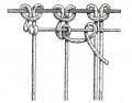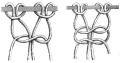 Два обыкновенных узла, связанных между собой, в старину называли «любовным узлом». Располагая эти узлы в шахматном порядке, можно получить сетку.